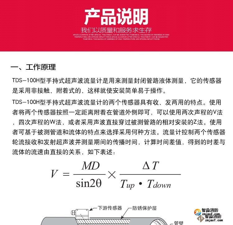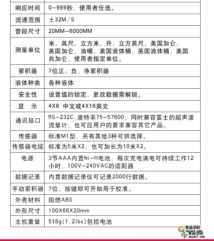 超聲波流量計測量管徑范圍:0mm~300mm;WWW.XFJCYQ.COM精度:±1%用于檢測消火栓系統和水噴淋系統的給水量以及消防豎管的流量分配。超聲波在流動的流體中傳播時就載上流體流速的信息。因此通過接收到的超聲波就可以檢測出流體的流速,從而換算成流量,圖1。圖1 超聲波流量計(一)、應用范圍用來檢測消火栓系統和...超聲波流量計測量管徑范圍:0mm~300mm;WWW.XFJCYQ.COM精度:±1%用于檢測消火栓系統和水噴淋系統的給水量以及消防豎管的流量分配。